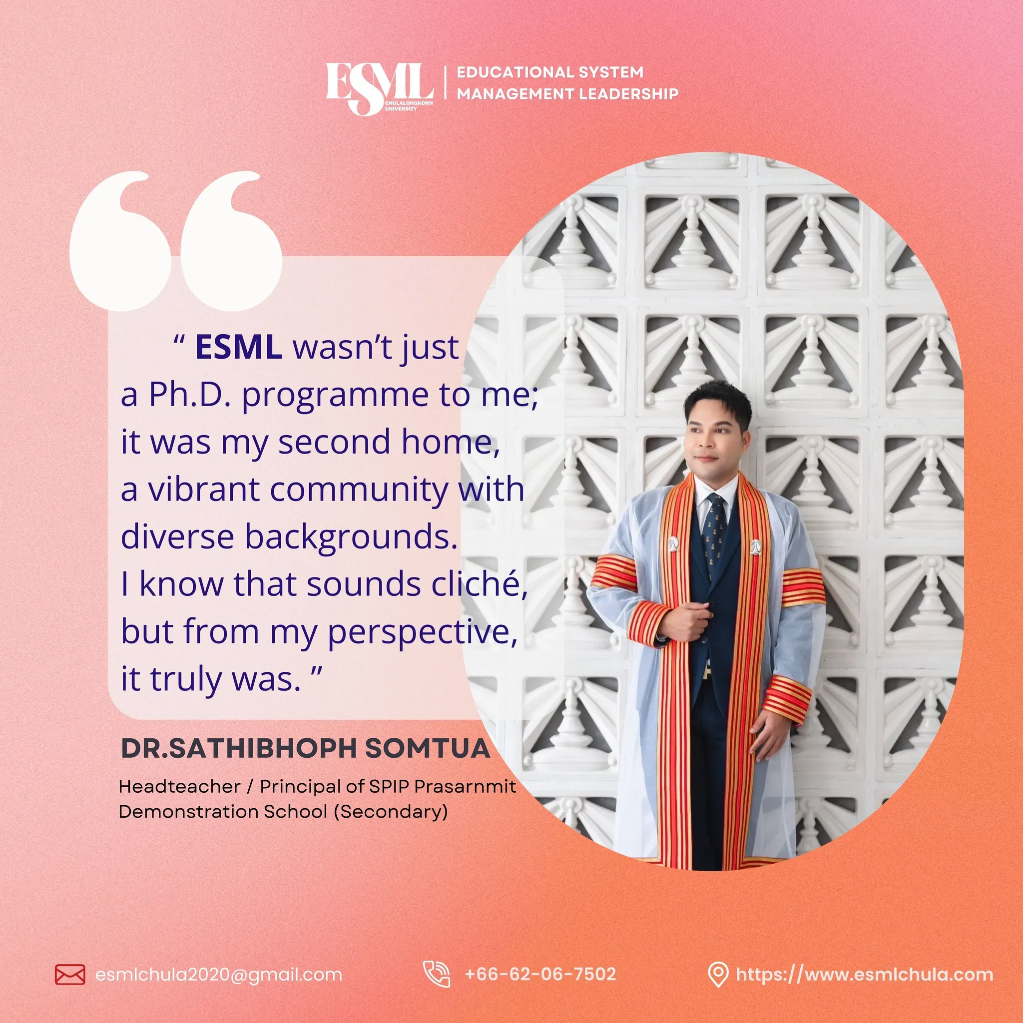 Perspectives from graduates of the ESML international programs — educators and leaders who have carried their research back into schools, ministries, and institutions across Asia and beyond.